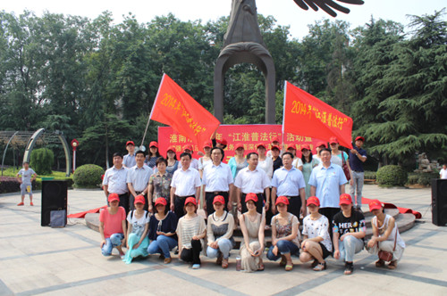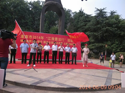 淮南市2014年“江淮普法行”包括“普及行”、“宣传行”、“督查行”三大版块。王玉成在启动仪式上强调,“江淮普法行”活动,是淮南市深入贯彻落实“六五”普法决议,大力推进“法治淮南”建设,积极服务科学发展的重要举措和创新平台,对于推动学法、守法、尊法、用法,营造良好的法治环境,促进我市经济社会的持续健康发展,具有十分重要的意义。要把“江淮普法行”活动与“增强全民法治观念服务全面深化改革”主题法制宣传活动有机结合起来,按照统一部署,精心组织,密切配合,锐意创新,务求实效的要求,把活动不断引向深入。