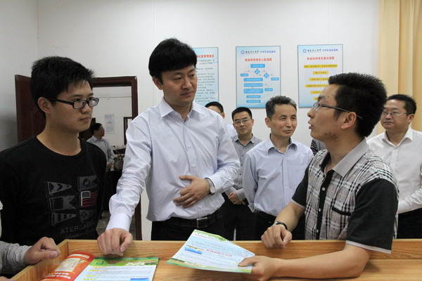 钱力还饶有兴趣的观看了我校部分学生科技创新产品和专利展示,对我校创新创业教育工作给予肯定。他表示,政府应积极搭建平台,让高校的科技创新成果和社会投资机构积极对接,争取实现科技创新成果产业化,推动经济社会又好又快发展。
