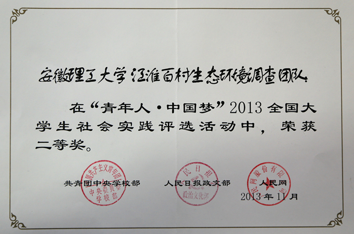 我校江淮百村人居环境调查团队利用2013年暑期时间,以皖北、皖中、皖西、皖南、沿江五个区域100个自然村庄为基点,组织百余名大学生志愿者,对这些村庄的人居环境进行了全面深入调查,获取了安徽省农村人居环境现状的第一手资料,形成的调查报告为我省美好乡村建设提供了较具价值的参考依据。广大青年学生志愿者在社会实践过程中,通过探访基层、调查研究,进一步加深了对贯彻落实科学发展观与加强生态文明建设的重要意义的理解,从而进一步增强了坚定走中国特色社会主义道路的理想信念。江淮百村人居环境调查实践活动受到了人民网、中国大学生在线、《安徽青年报》、《淮河早报》等媒体的持续关注,正面展示了博业体育(中国)官方网站-登录入口青年学生的良好精神风貌,提高了学校的知名度和美誉度。