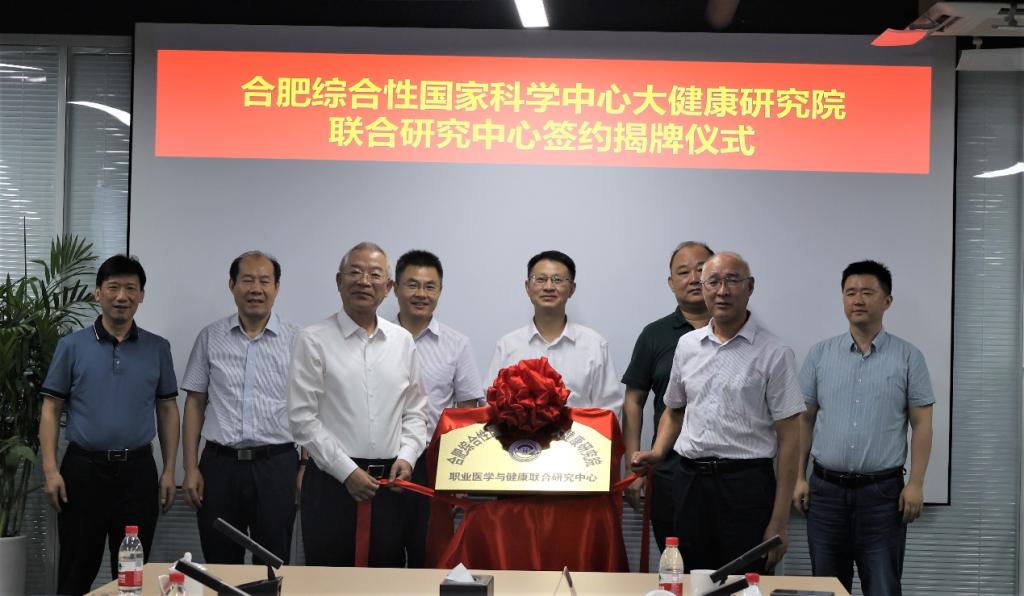 7月29日上午,学校与合肥综合性国家科学中心大健康研究院共建职业医学与健康联合研究中心签约揭牌仪式在研究院一号楼2楼会议室举行。校党委常委、副校长郑明东出席活动并讲话。省发改委党组成员、副主任徐志,合肥市委常委袁飞,合肥综合性国家科学中心大健康研究院院长田志刚院士、执行院长周荣斌、姜精如、王育才、白丽、院长助理金腾川,安徽农业大学党委常委、副校长操海群,蚌埠医学院副院长陈昌杰(线上),省发改委科学中心处、合肥市发改委、市科技局、经开区,蚌埠市发改委、淮南市发改委相关负责人出席活动。仪式由王育才主持。