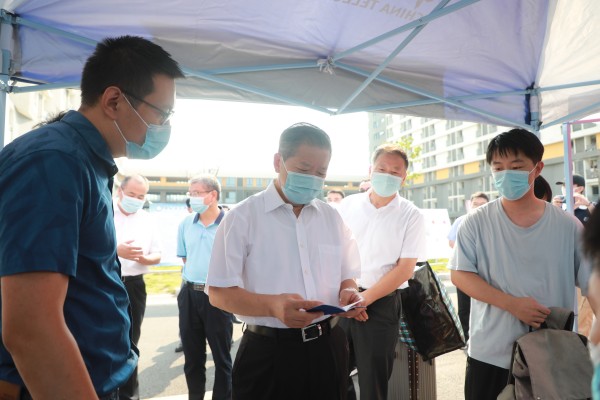 因疫情防控需要,新生家长无法进入校园。袁亮一行来到学校南门,感谢学生家长对博业体育(中国)官方网站-登录入口的信任和对学校迎新工作、疫情防控措施给予的理解与支持,认真听取新生家长对学校工作的建议。“请家长们放心,你们把孩子交给我们,我们一定把孩子教育培养好”,袁亮详细解答了学生课程学习、生活住宿等家长们关心的问题。校领导在南门现场查看了学生核酸检测报告查验、安康码查验、体温检测、行李物品消杀等环节防控措施落实情况,并叮嘱相关部门要扎实做好疫情防控工作,确保新生报到入学各项工作平稳有序。