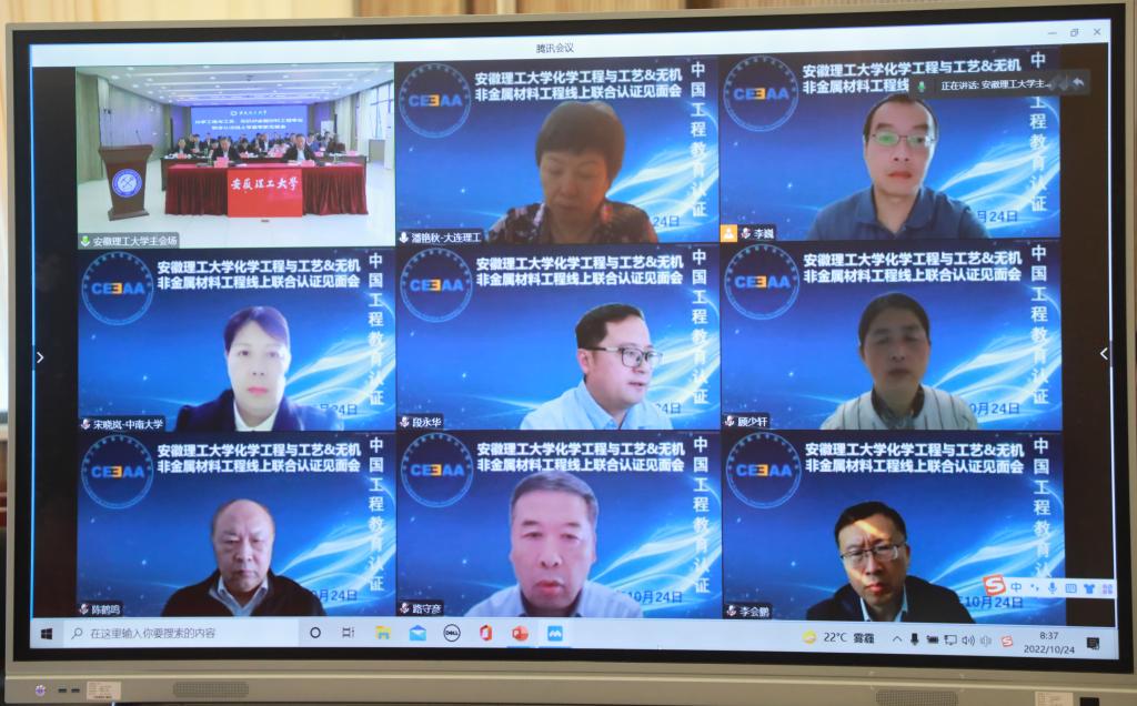 10月24日至25日,由联合考查专家组组长、南京邮电大学陈鹤鸣教授,化学工程与工艺专业专家组组长、大连理工大学潘艳秋教授,无机非金属材料工程专业专家组组长、中南大学宋晓岚教授等一行8人组成的工程教育专业认证专家组,对我校化学工程与工艺、无机非金属材料工程专业开展线上联合考查。