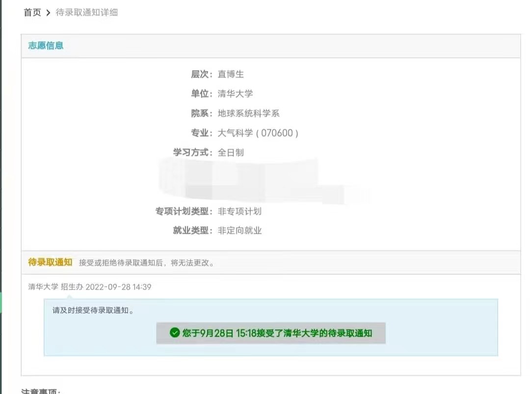 珠流壁转,李申奥从多个项目、论文、比赛和实践活动中不断成长。谈及保研的经历,李申奥说她是从相关公众号中得知直博清华的机会。当看到了“保研夏令营”发布了关于清华大学的直博消息,李申奥说:“清华大学这四个字对我的吸引是′致命′的。”在她眼里,清华大学是学术的殿堂和追求的方向。于是,她根据要求提交了报名的资料,等待进一步的考核。清华大学的笔试面试时间安排相当紧凑,而彼时又正值期末考试期间,如何协调其中的关系成为了最大的问题。经过与清华招生办的沟通,笔试面试的时间与考试时间错开了,她这才得以顺利进行考核。那段时间,李申奥不仅要准备即将到来的结课考试,因为一旦考试不过关拿不到保研名额一切的努力都将白费,还要紧紧抓住这次直博清华的宝贵机会,全力准备清华的考核。双管齐下,不得有一秒掉以轻心。一直以来的稳扎稳打给了她最大的底气,李申奥并没有急于求成,而是向内寻求。她回顾并更新了自己的已有内容,在夏令营结识的清华师兄的帮助下获得了宝贵的建议,将自己的所有完完全全地展现出来。所幸,结果没有辜负这个努力的女孩。她顺利地获得了清华大学直博生的名额!这并非一朝一夕的付出,而是无数个日夜一步一步走出来的路。“关关难过关关过,来路漫漫亦灿灿”,跨过一道道困难,李申奥从未停止向前的脚步。这条路,沿途开满鲜花,而通往的,是她梦寐以求的地方。