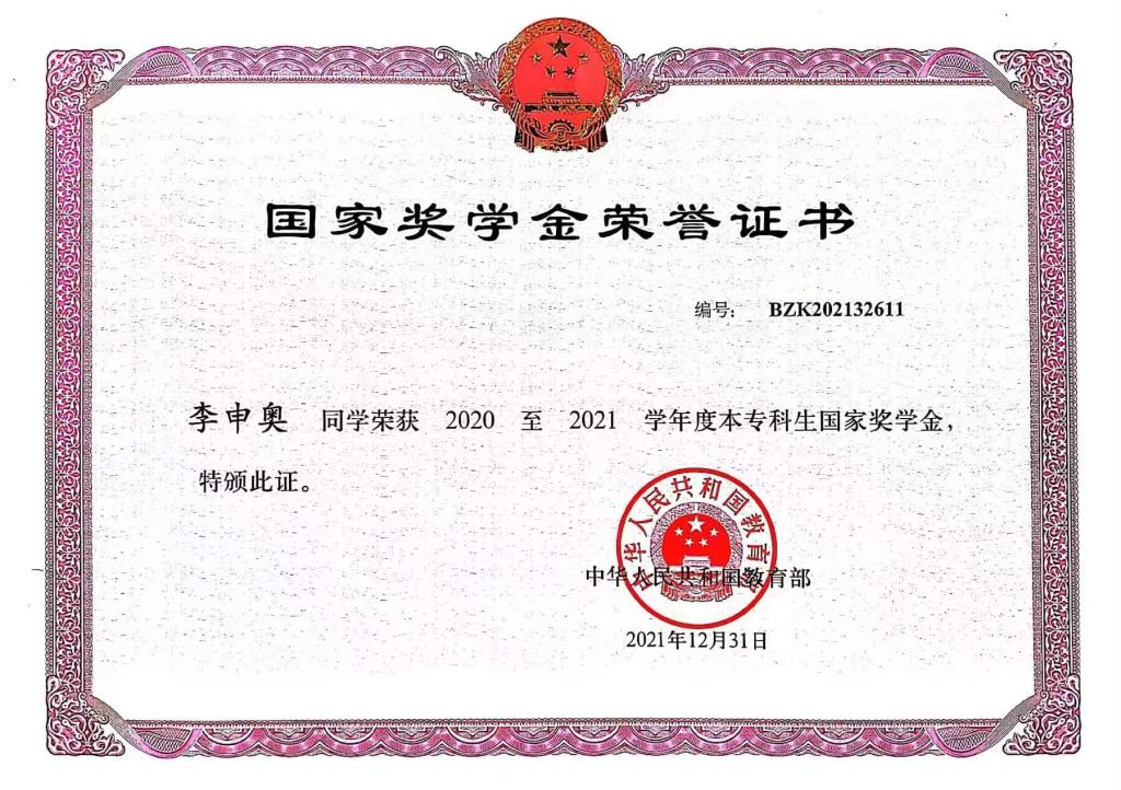 在大学三年的学习中,李申奥始终一步一个脚印的稳扎稳打,用坚持不懈的精神和脚踏实地的行动演绎着自己的不平凡。她一直以这种方式默默地努力坚持着,并在第一个学期末取得了专业第一名。尝到了努力之后获得的甜果,李申奥将自身更多地投入在学习中,成绩一年比一年好,形成了一个良性循环。最终,量变引起质变,她最后综合绩点4.37,排名专业第一,在《大学物理(上)》《电子电工技术》取得了满分的成绩,《高数(上)》《高数(下)》等课程均取得了96分以上的高分!也正是基于此,李申奥成为免推成绩考核全院第一,顺利拿到保研的资格。