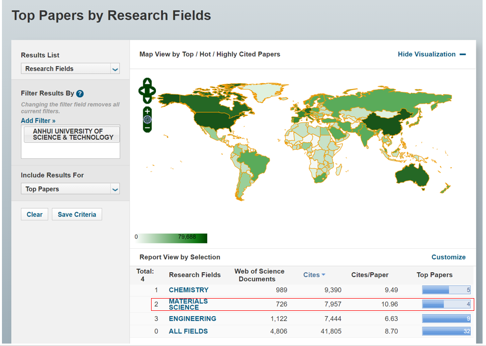 此次“材料科学”学科进入ESI全球排名前1%,是学校在学科建设方面取得的新突破,根据报告显示,我校材料科学与工程学院、化学工程学院、土木建筑学院、力物学院、采动重点实验室、分析测试中心、机械工程学院、矿业工程学院等对本学科做出贡献。