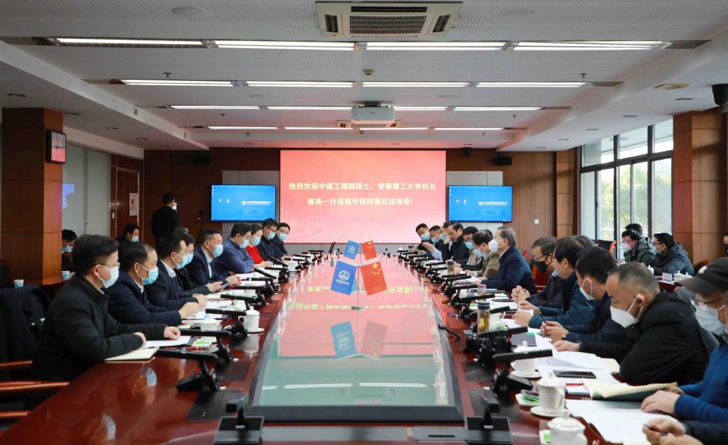 12月12日下午,校长袁亮院士牵头的《极高地应力隧道岩爆孕育机理及安全防控技术研究》项目推进会在合肥中铁四局集团有限公司二楼会议室举行。校党委副书记、校长袁亮院士,山东大学王汉鹏教授,中国矿业大学窦林名教授,学校程桦教授、唐春安教授,南京派光信息感知技术有限公司董事长石峥映,中铁四局集团有限公司副总经理、总工程师梁超,副总工程师杨仲杰、王圣涛,技术管理部部长陈文尹等出席推进会。陈文尹主持会议。