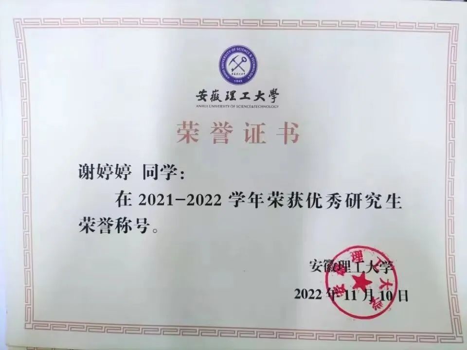 下手处是自强不息,成就处是至诚无息。谢婷婷的研究属于单打独斗型,师兄师姐们都有自己负责的课题,遇到不同问题时,只能一个人去不停的推敲、找资料、找导师解惑。在她研究复合材料催化水解时,导师只是给了一个有机物,让她合成金属有机框架材料并测试性能,过程要靠自己不断尝试。实验中最害怕遇到性能重复性不好的情况,但是她就经常遇到这样的问题,时常收拾空欢喜一场,只能不断调节,再次寻找。一次次的失败和虚假的成功,谢婷婷难免会有懈气的时候,而导师总会在她陷入思维困境时提点一把,同门们偶尔约着一起出去散散心。温暖和谐的科研氛围,给予了谢婷婷坚实的后盾。努力终有回馈,她成功找到了性能良好的金属材料。