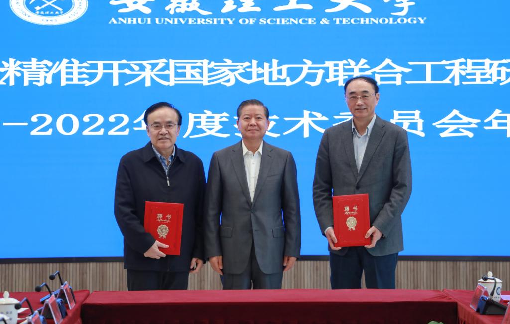 袁亮院士为葛世荣院士(右一)和张来斌院士(左一)颁发聘书