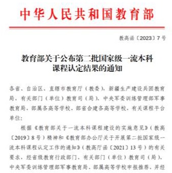 近日,教育部公布了第二批国家级一流本科课程认定结果,我校8门课程榜上有名,其中线上一流课程1门,线上线下混合式一流课程3门,线下一流课程2门,虚拟仿真实验教学一流课程2门,获批总数居省属高校前列,尤其是国家级虚拟仿真实验教学一流课程和线上一流课程均实现了零的突破,体现了我校优质课程资源前期建设质量水平提升的新成效。