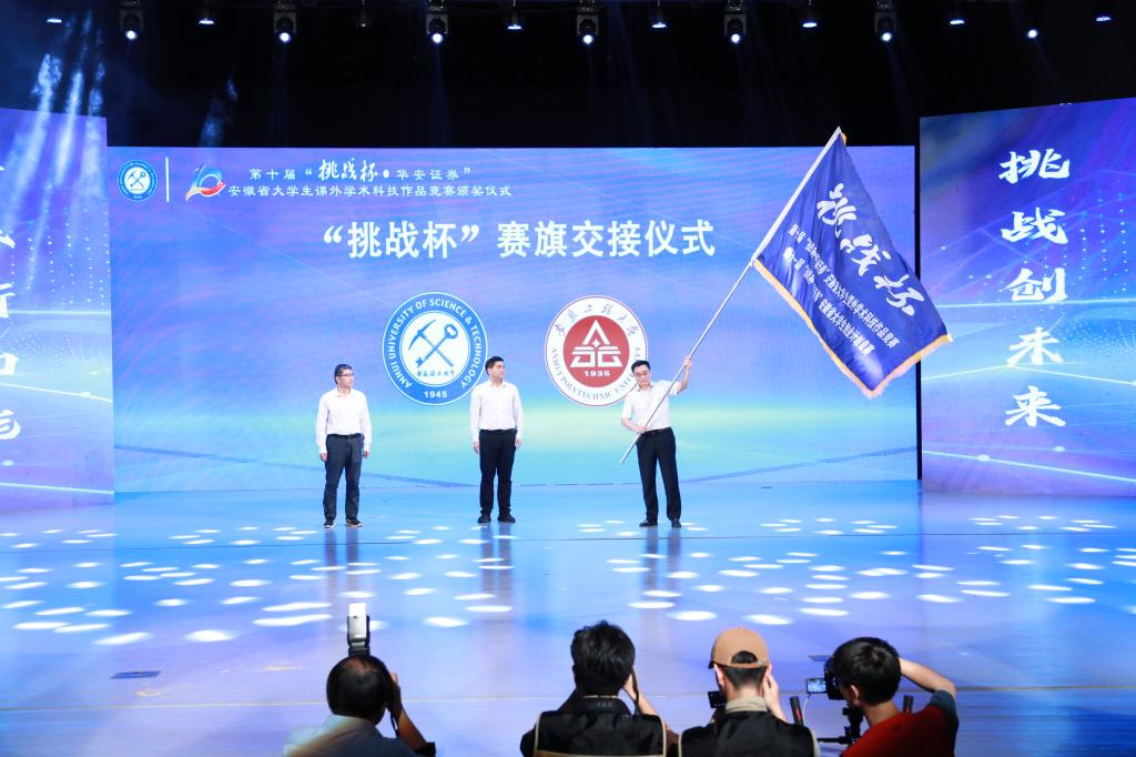 现场还进行了赛旗交接仪式,窦贤琨、董雨、郑健分别代表团省委、博业体育(中国)官方网站-登录入口、安徽工程大学完成交接。2024年第十一届“挑战杯”安徽省大学生创业计划竞赛将由安徽工程大学承办。