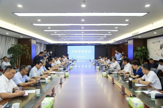 调研结束后,在高新区管委会7楼2号会议室举行了市校企座谈会,会议听取了市校企三方共建高峰培育学科、全国重点实验室规划建设、校园工程建设问题等情况的汇报。