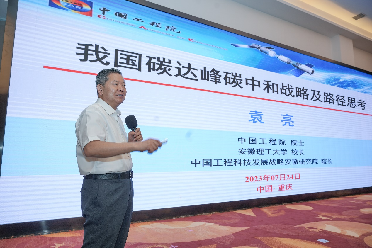 下午,高端学术论坛由实验室执行主任聂百胜教授主持,袁亮院士作了题为《我国碳达峰碳中和战略及路径思考》的主旨报告。袁亮院士在报告中指出,当前全球能源领域碳排放呈现总量增长、强度降低的趋势,中国温室气体排放形势依旧严峻,但逐渐向好。新时代10年中国能源高质量发展成绩卓越,全球非化石能源增量中国的贡献超40%,污染物排放量比10年前下降近90%,单位GDP能耗降幅超过同期世界平均水平2倍。但中国实现“双碳”目标依然面临经济高质量增长要求与减排难度之间矛盾突显、碳排放总量大与实现碳中和时间短矛盾突显、全国一盘棋与区域多样性之间矛盾突显、能源利用效率低与低碳技术突破难矛盾突显等诸多挑战。袁亮院士立足“双碳”发展现状与面临的挑战,具象化提出“双碳”战略路径,从横向来看,实现“双碳”目标要从能源、产业、经济、社会多端口协同发力;从纵向来看,实现“双碳”目标要从供应端、消费端、固碳端三端齐头并进。“双碳”战略的实现要抓主要矛盾,以能源为关键突破口,构建现代能源体系,要遵循“差异达峰、协同中和”八字战略理念。最后,袁亮院士给出了“双碳”重大科技问题与攻关方向,要围绕煤炭清洁高效利用、瓦斯全浓度利用、废弃矿井资源开发利用、新能源开发利用、储能、CCS/CCUS、碳中和科学管理等领域加强战略研究、基础研究、共性技术与装备攻关,谱写经济社会绿色低碳转型和高质量发展新篇章。
