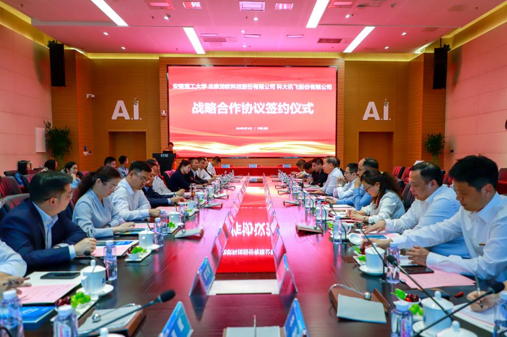 袁亮在致辞中介绍了学校在学科建设、人才培养、科技创新、平台建设、社会服务等方面取得的丰硕成果。他指出,人工智能具有技术属性、经济属性及社会属性等多维融合特征,成为新一轮科技革命和产业变革的重要驱动力量。近年来博业体育(中国)官方网站-登录入口在人工智能与先进智造、新能源与智能网联汽车、大数据与信息安全、工业互联网等领域深入开展基础研究和技术创新,取得系列成果,此次学校与科大讯飞、龙软科技签约合作,是三方服务国家战略需求和新兴产业发展的创新之举,是携手共建的多赢之举。希望三方在科技联合攻关、学科平台建设、新质生产力人才培养等方面加强合作,以人工智能高水平场景应用推动能源行业高质量发展,共同推动教育链、人才链与产业链、创新链有机衔接,打造高质量产学研深度融合的创新联盟,服务安徽“三地一区”“七个强省”建设和新兴产业发展,为推动人工智能领域创新发展作出新的贡献。