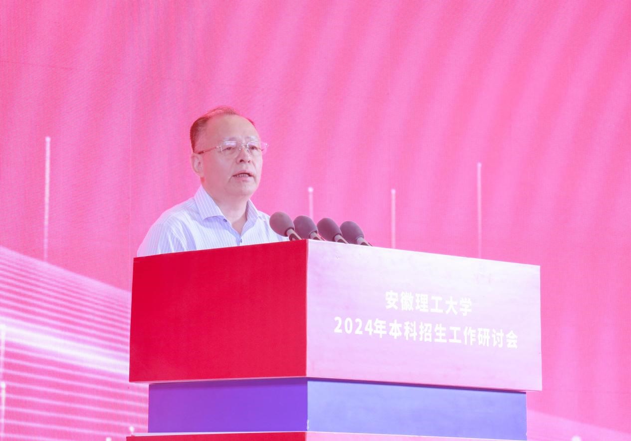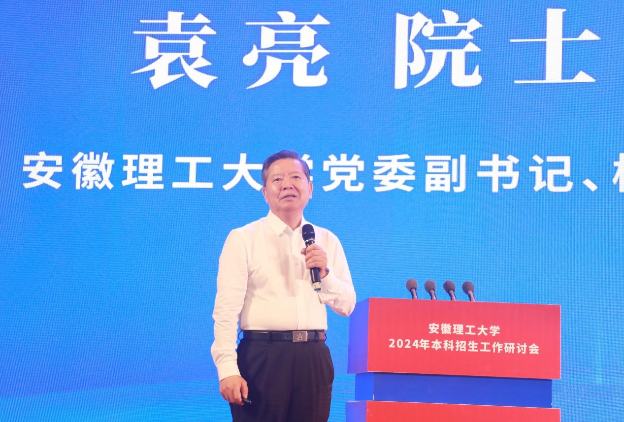 8月10日上午,学校2024年本科招生工作研讨会在合肥隆重举行,来自全省16个地市、165所优质生源中学领导、教导主任、年级主任、班主任和55位新生代表及家长参加会议,共商教育高质量发展,共话美好未来。校党委书记郭永存,党委副书记、校长袁亮院士,党委常委、副校长宫能平、董雨、鲁超,党委常委、纪委书记、监察专员王献余,党委常委、副校长王先江、张平松出席会议。会议由董雨主持。