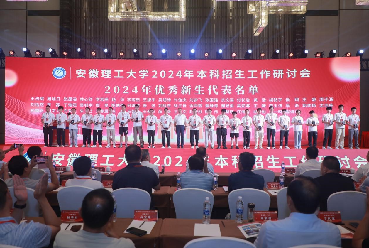 宫能平宣读了受邀参加会议的2024年录取优秀新生名单,并为优秀新生代表颁发学习用品。他表示,学校2024年生源质量持续提升,招生录取位次和整体排名大幅提升,高分考生占比显著提高,在安徽省本科批次物理加化学组投档线561分,位居省属高校第二。学校将努力构建高质量教育教学体系,提高人才培养质量,让一批批安理学子成为国家栋梁之材。